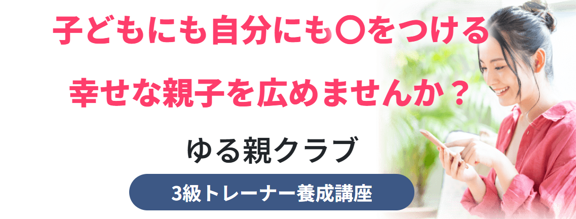 講義と練習を通じて、親が‟ゆる~く〇をつける”方法を学び、参加者同士でお互いに〇をつけ合うことで、価値観をゆるめながら自己肯定感を高めて、より幸せな親子の愛着関係をつくる力を育んでいくために”一緒にゆる親クラブを広げていく”トレーナー養成講座を募集します。